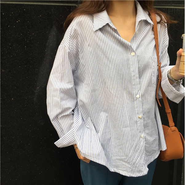 早秋女裝韓版簡約百搭寬松學(xué)生翻領(lǐng)排扣襯衫